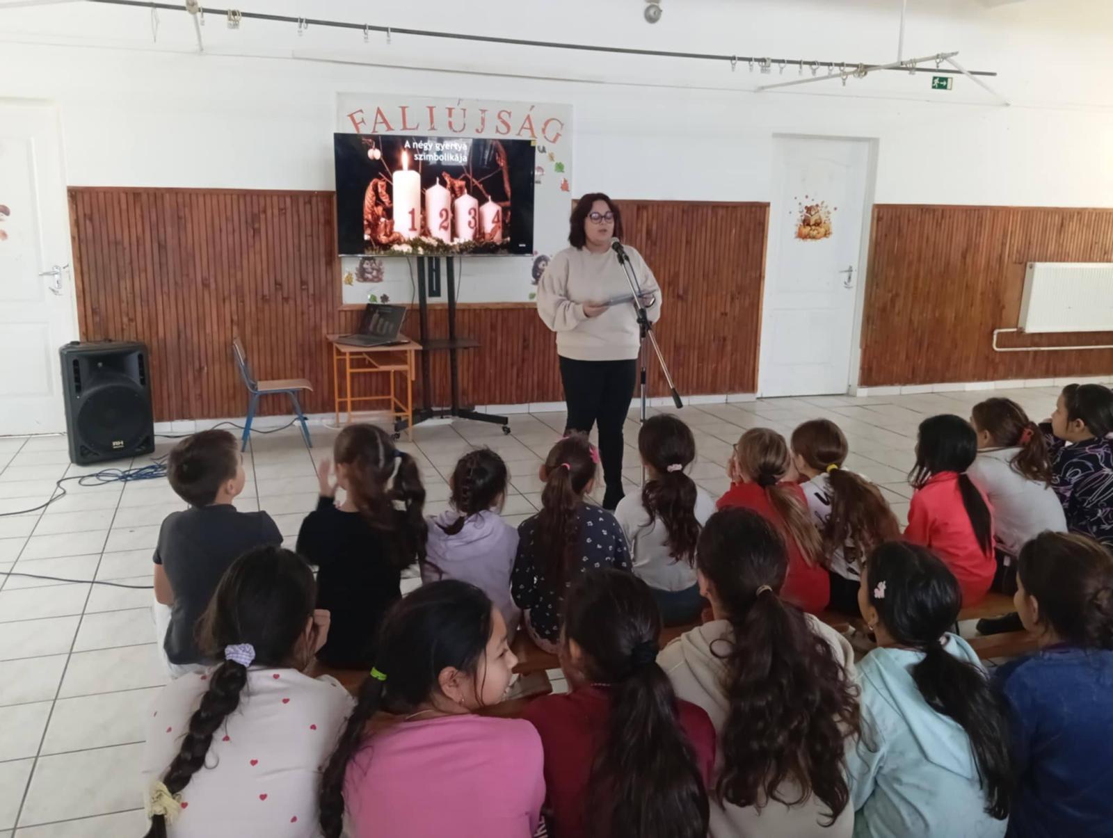 Iskolánkban az "RRF-MMSZA-1.0.0.1-23-2024-00002 - Mintaiskola modellprogram megvalósítása Tiszakerecsenyen" keretein belül 2025. november 27- december 3 között adventi projekthetet szerveztünk. A projekthét célja az adventi időszak hagyományainak megismertetése a tanulókkal (népszokások, jelképek, történések) és játékos, mozgásos feladatok segítségével az együttműködés fejlesztése. Ezt a célt szolgálták a vetélkedők, a kézműves foglalkozások és az ismeretterjesztő interaktív előadások. A projekthét alatt tovább fejlődött tanulóink kreatív alkotómunkája, és az új kézműves technikák kipróbálásával az együttműködés és finommotorika is. A projekthét során sikerült erősítenünk a szülők bevonásával a közösségi élményt és igazi érzelmi/lelki ráhangolódást tudtunk nyújtani az ünnepre. A közös adventi koszorú készítése és gyertyagyújtás, az együtt éneklés öröme, családi adventi ablakdíszek megalkotása – mind olyan programok voltak, melyek szívet-lelket megmelengettek.