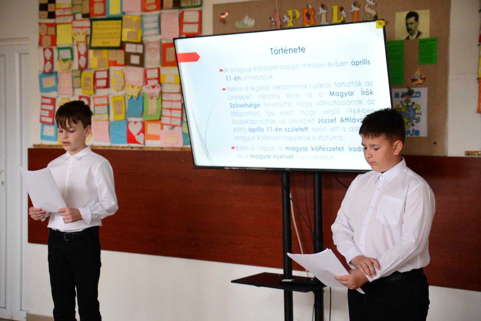 Április 11 - én ünnepeljük a magyar költészet napját. Eme jeles eseményről, Balázsi Márta és Huszti Marianna kolléganők koordinálásával egy rövid ünnepi műsorral emlékeztek meg felsős tanulóink.